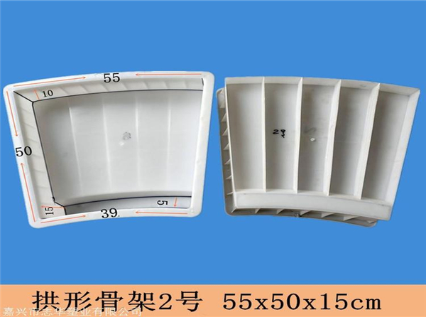 1、預製拱形骨架模具采用多塊組(zǔ)合模式,一(yī)般使用塑料材質加工。