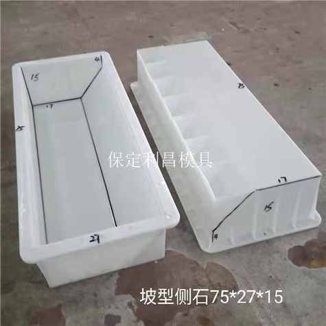 側石模具的簡介是為(wéi)了完善當前在公路建設使用的不同類(lèi)型混凝(níng)土預製塊,側石模具屬於路沿石模具中的一種,其(qí)尺寸以及(jí)外形種類非常豐富,都是根據(jù)提供的具體側石預製(zhì)塊圖紙進行模具加工(gōng)生產。側石(shí)模具產(chǎn)品介紹是為了更好的完成對於不同混(hún)凝土側石的生產,因為在側石模具的類型裏麵,眾多的型號的形狀組成(chéng)了相當豐(fēng)富的係列(liè),滿(mǎn)足了甘肅、湖北、寧夏、內蒙古等多(duō)個地區公路修建的使用。側石模具作為塑料(liào)模具的一種,長度多(duō)為100、50、75cm,高度為20、15、12、10cm等(děng),當商家需要特殊尺寸的模具時,可以將模具的需求發給我廠,我廠可根據商家要求量身定(dìng)製並提供配送服務。這就(jiù)是此類模具(jù)的一大優勢。側石作為城市道路建設中不可(kě)或缺的材(cái)料,主要用(yòng)在道路兩(liǎng)側,起到分界的(de)作(zuò)用。要想提(tí)高側石塑料(liào)模具的使用壽命離不開對模具本身的防護,可以參看以下的建(jiàn)議:模具為塑料製品,需要延緩其氧化現象,此時需要將模具保(bǎo)存在幹燥、恒(héng)溫的環境下;此外長時間的日曬會使模具本身的韌性下降,使模具發黃、變硬,要將模(mó)具存儲在(zài)避光環(huán)境下;模具使用完的清潔和防護也是很有必要的。預製(zhì)側石模具的使用方法與鋼模具類似,首先(xiān)在使用前要在模具表麵塗抹脫模劑,可以在一定程度上保護模具。然後將原料倒入模具中(zhōng),等(děng)待模具中原料的自然風幹,風幹(gàn)的時間與外界環(huán)境溫度密不可分,隨著溫(wēn)度的升高,風幹時間在減少(shǎo)。等待原料完全風幹後對模具進行脫模處理,塗抹(mò)脫模劑即可,完成後要對模具進行清潔,並在表麵塗抹保護劑。